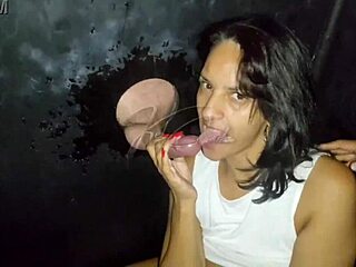 Sexy Latina Jynx Maze dychtivě sátá pták skrz glory hole!