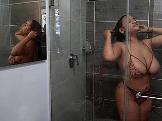 Join Giuliana Big's steamy shower pussy play with huge natural tits