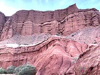 glasses brunette deepthroats pov in scenic canyon outdoors