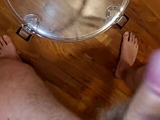 Playing with His Dick in Heels, Jerking with Her Feet for a Foot Fetish Cumshot