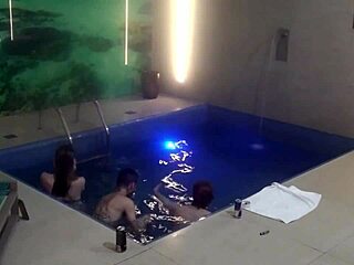 swinger couple gets wild with a hot milf for an anal party in the jacuzzi, licking and swallowing everything! 😈