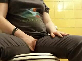 Eu me despejo e me masturbo no banheiro público