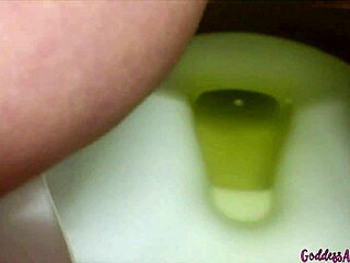 Naughty goddess peeing on the toilet in a steamy bathroom scene. Watch this milf's solo shaved action unfold.