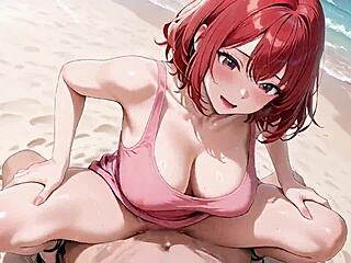 kneeling seaside i sucked him hard then took sultry sideways fucks with hot redhead hentai cumshots inside!