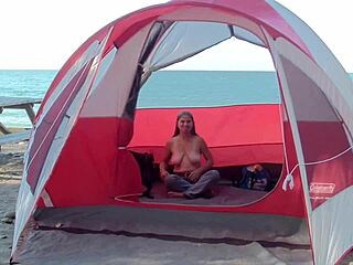 มิลฟ์นู้ดิสต์หน้าอกใหญ่เปตราโชว์รูปร่างที่ชายหาด