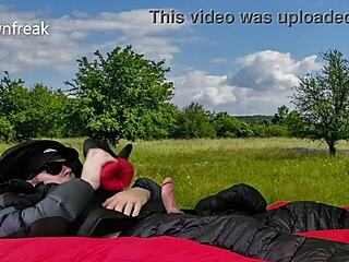 MILF Frina klär av ung kille utomhus
