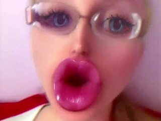 check out this dollification sissification with huge pink lips glasses fetish