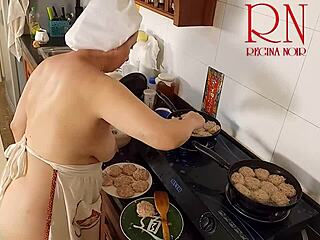 Naked Nudist Housewife Regina Noir Cooks In Kitchen As Maid