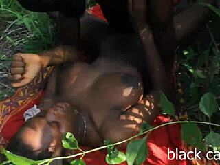 Heart pounds watching cute skinny ebony teen caught fucking monster bbc outdoors in bush.