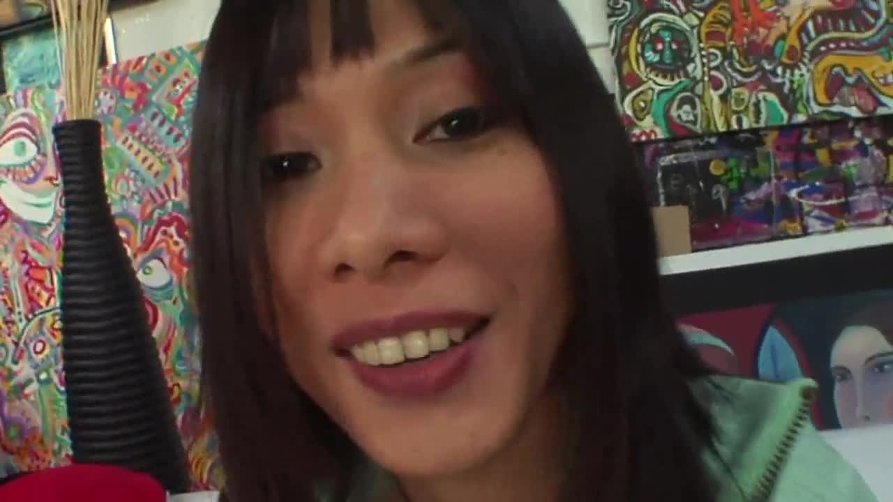 Thai ladyboy Simine snorts her facial after hard butt boning in fishnets and heels.