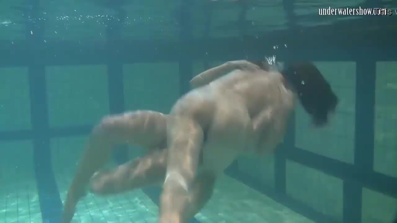 Brunette teen Kristina Andreeva swims naked in the pool underwater