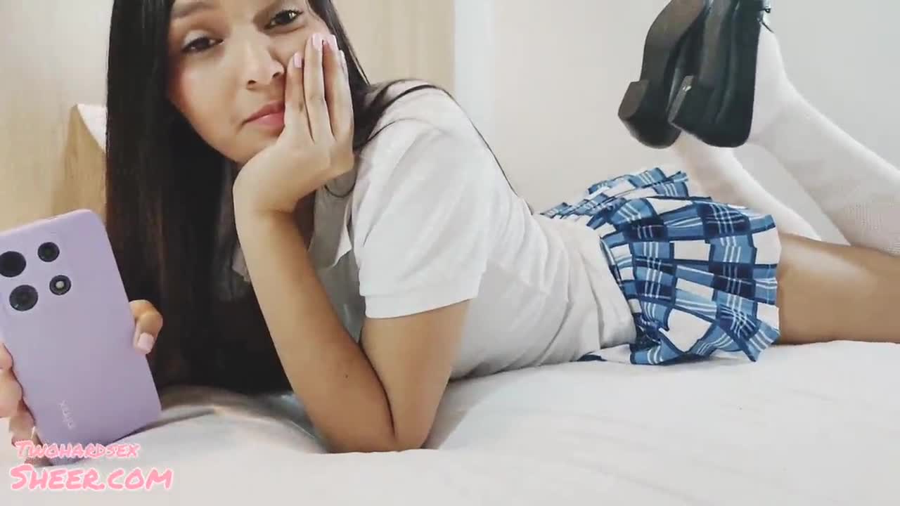 my innocent stepdaughter wants to play on my phone while i rub her pussy and grind on her ass