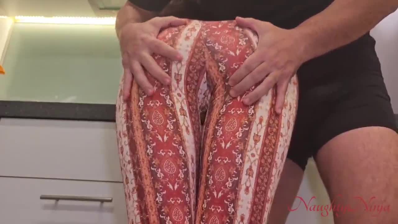 my sexy cleaner lady takes doggystyle creampie tip in kitchen leggings