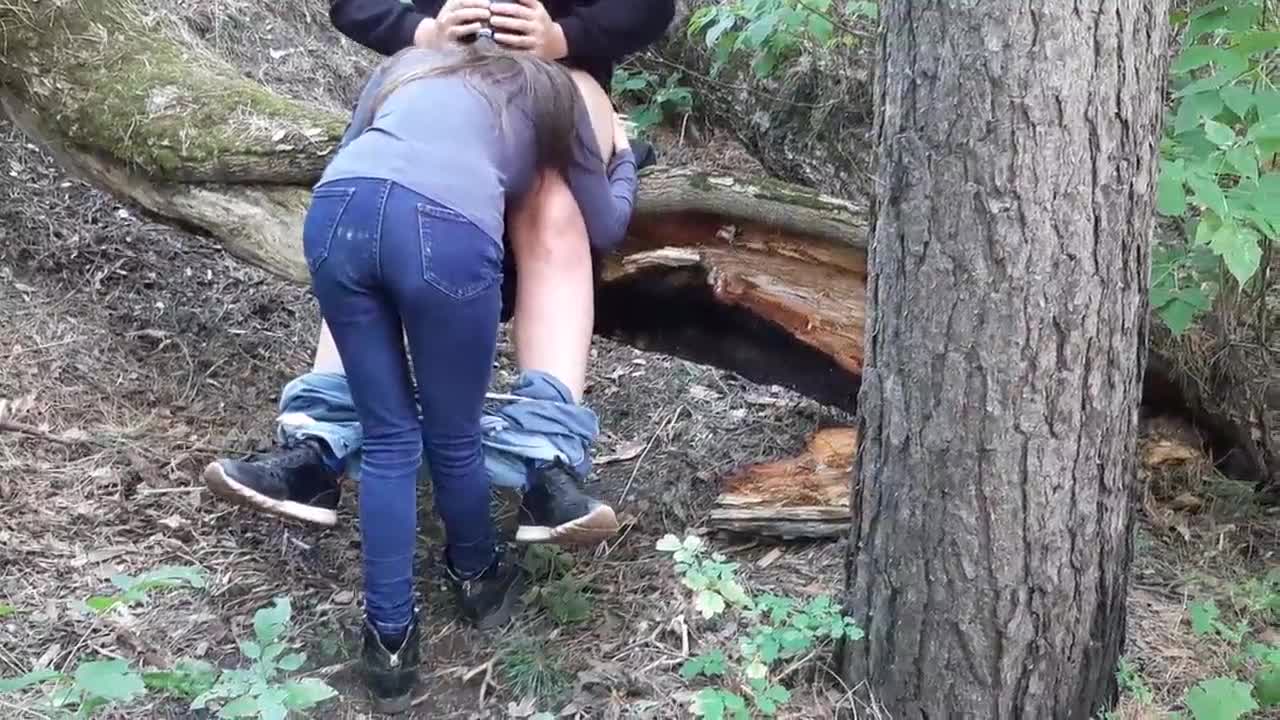 Vi gömde oss under ett träd från regnet och hade het lesbisk sex för att hålla värmen