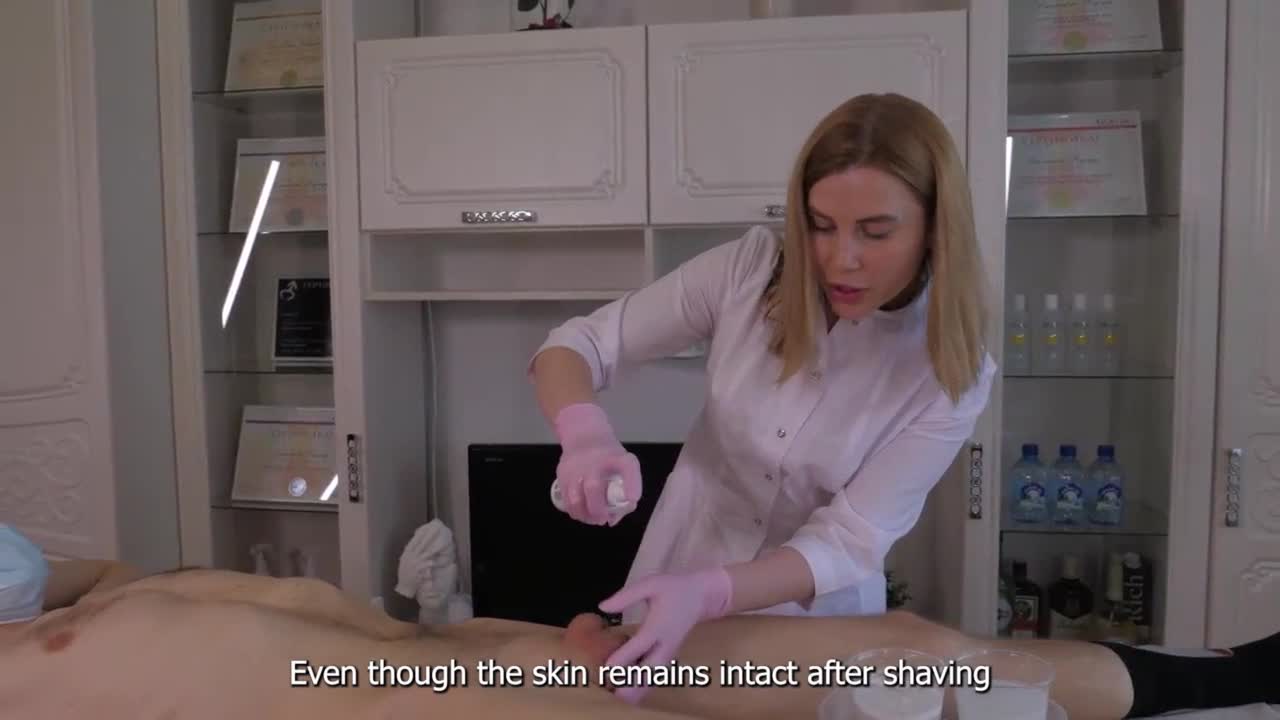 cute euro babe dominates naked guy on her knees at work, sucking close up