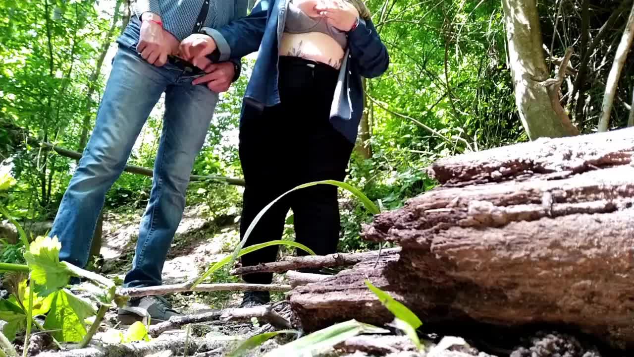 Dirty wife with big tits sucks stranger's cock