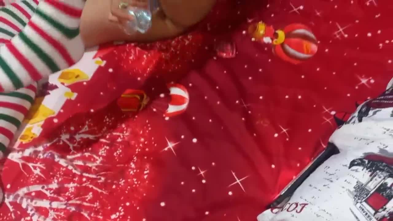 Lesbians sharing intimate Christmas moments with each other