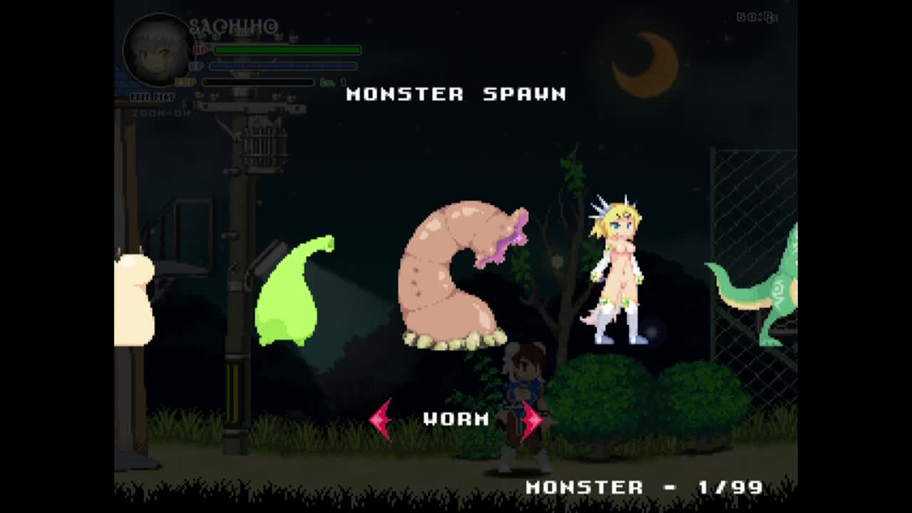귀여운 금발 새 헨타이 게임 군대 전투 돌파