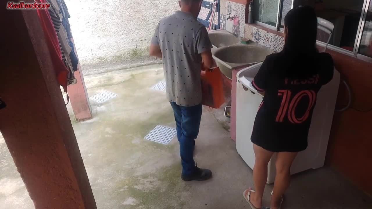 Married housewife pays washing machine tech with her tight body in homemade clip
